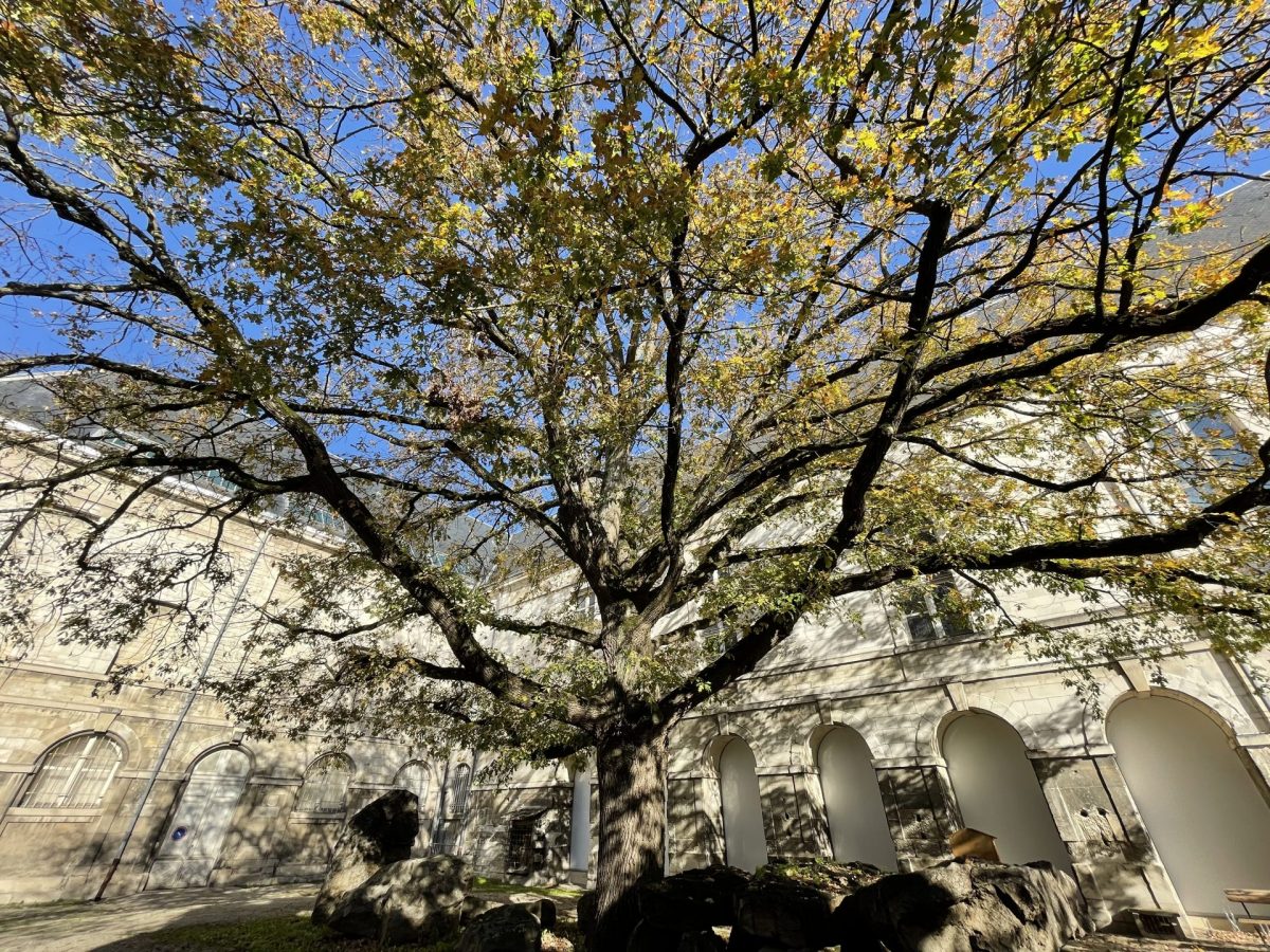 Le Musée Saint Loup se dote de deux arbres remarquables, un Hêtre à l’avant, et ce Chêne, magnifique, à l’envergure impressionnante, que seuls les bâtiments du musée semblent pouvoir contenir.