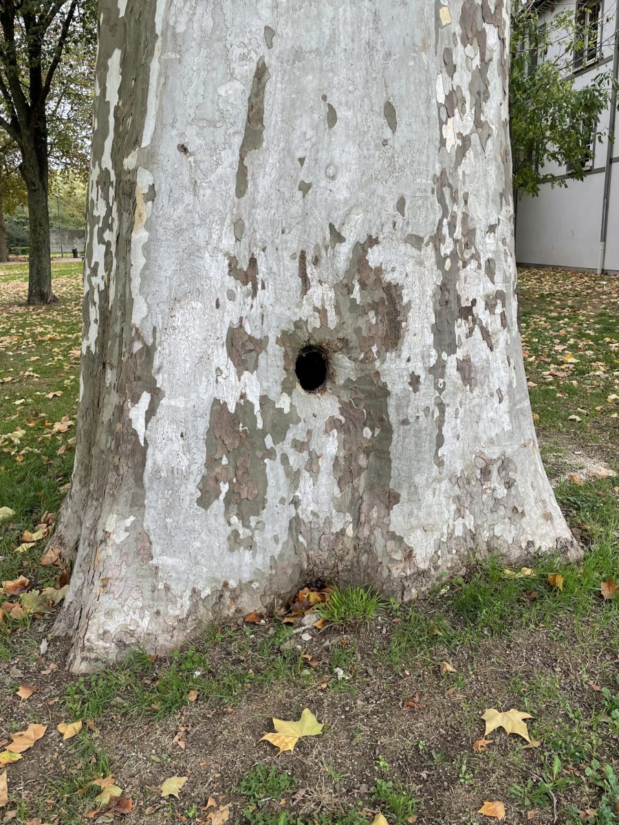 Difficile de dire aujourd’hui comment celui-ci est apparu mais ce qui est sûr c’est que notre platane le résorbe au fur et à mesure.
