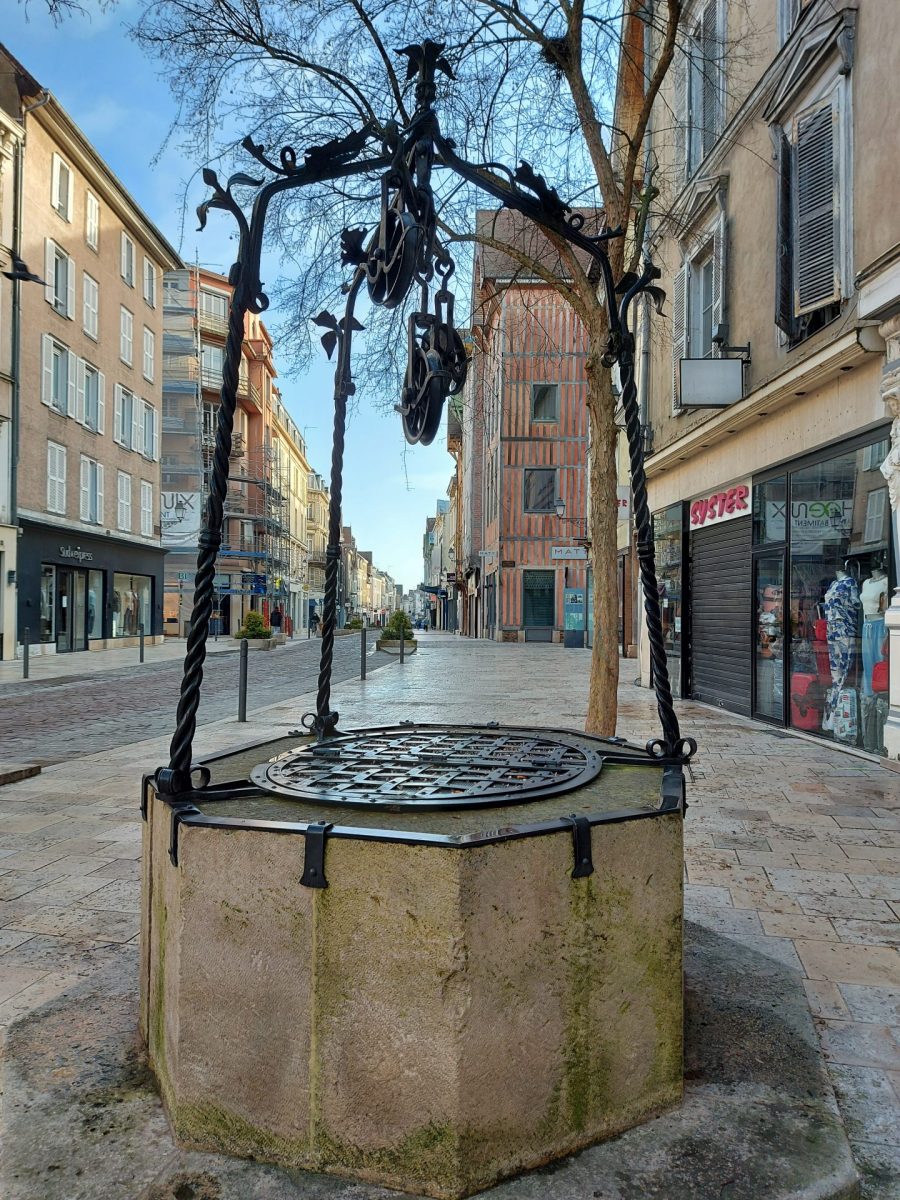 A partir de la fin du XXe siècle cependant, un certain nombre de ces puits sont reconstruits, parfois à l’identique, parfois réinterprétés. Les margelles sont recomposées, et les ferronneries, dont certaines sont conservées dans les musées de Troyes sont parfois réinstallées. Le « puit des quatre vents », devant lequel vous vous trouvez, est un puit reconstruit. Il est ainsi nommé car il se trouve au croisement de deux rues et se situe dans un axe passant. Il disposait de trois poulies, ce qui permettait à trois personnes de tirer de l’eau simultanément. Vous vous trouvez désormais en haut de la rue Zola, qui vous permet de traverser le centre-ville et d’admirer de chaque côté de la rue la beauté des constructions et de l’histoire troyenne, sur laquelle vous êtes désormais bien plus renseigné.