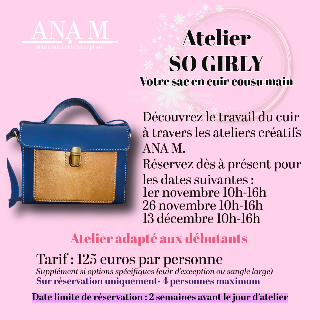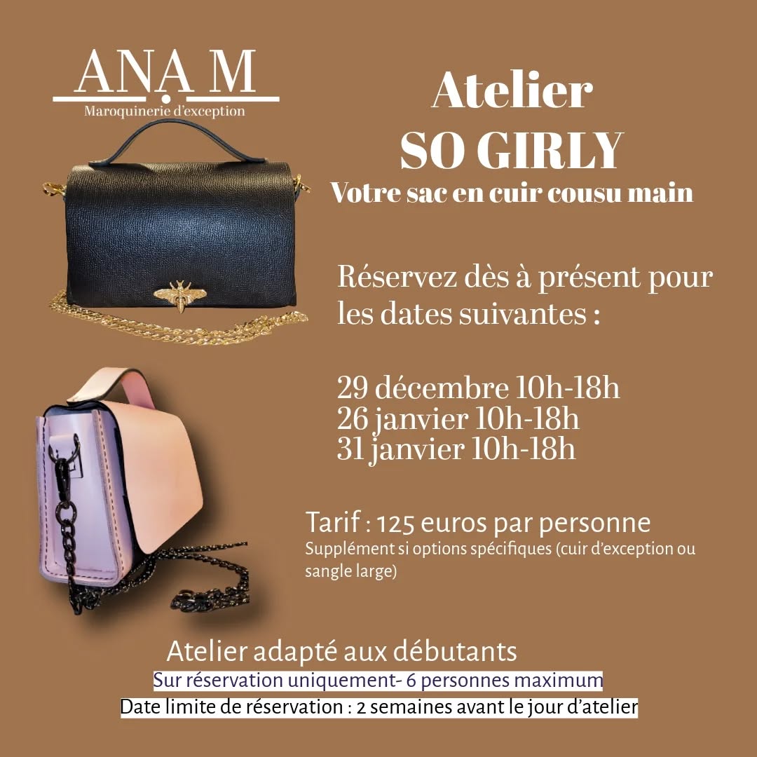 Attention réservation au plus tard deux semaines avant, et choix des cuirs lors de votre réservation pour la bonne préparation de votre atelier.