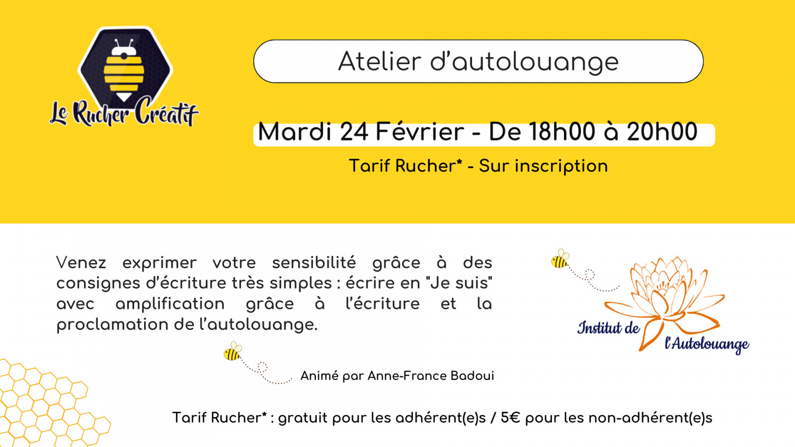Gratuit pour les adhérent(e)s au Rucher Créatif