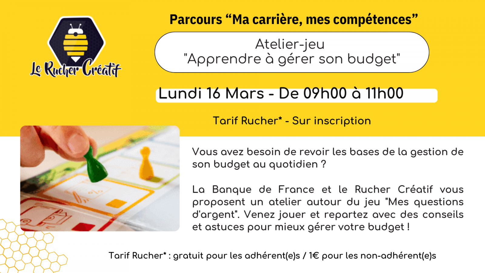 Vous avez besoin de revoir les bases de la gestion de son budget au quotidien ? La Banque de France et le Rucher Créatif vous proposent un atelier autour du jeu "Mes questions d'argent".