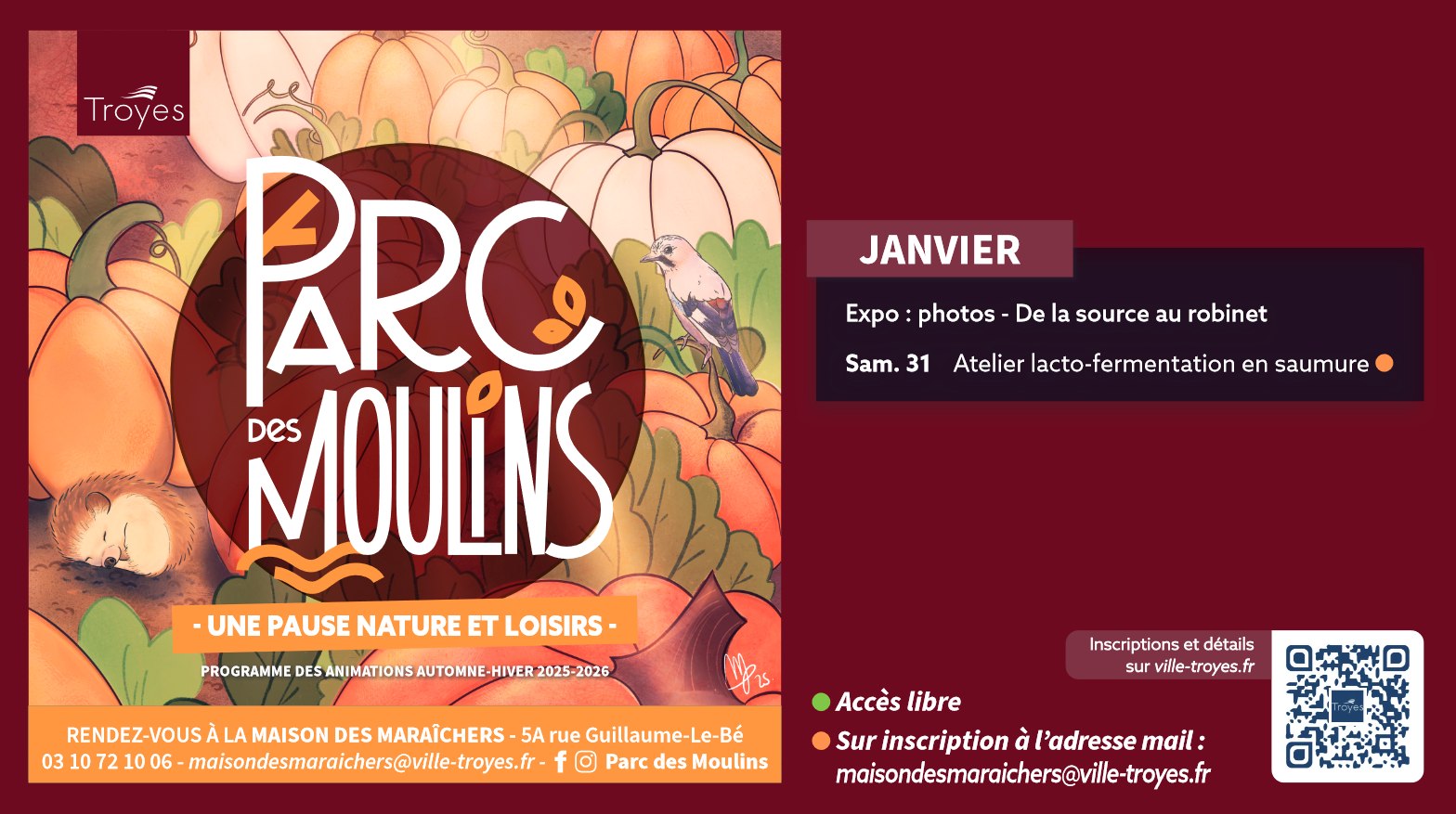 Inscriptions uniquement par mail à la Maison des Maraîchers.