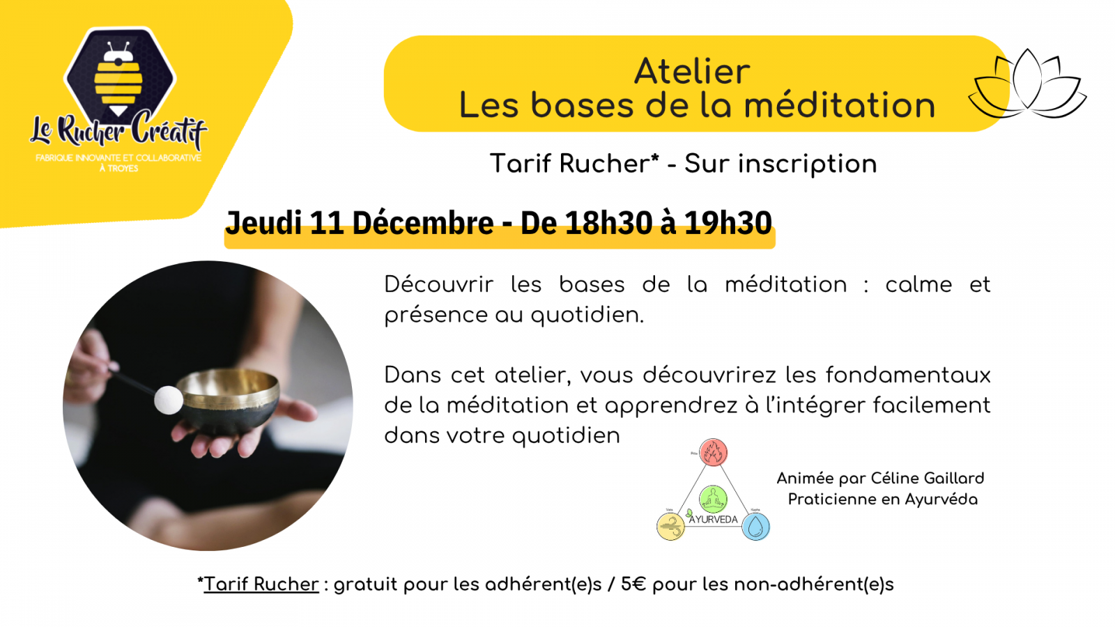 Dans cet atelier, vous découvrirez les fondamentaux de la méditation et apprendrez à l’intégrer facilement dans votre quotidien.
