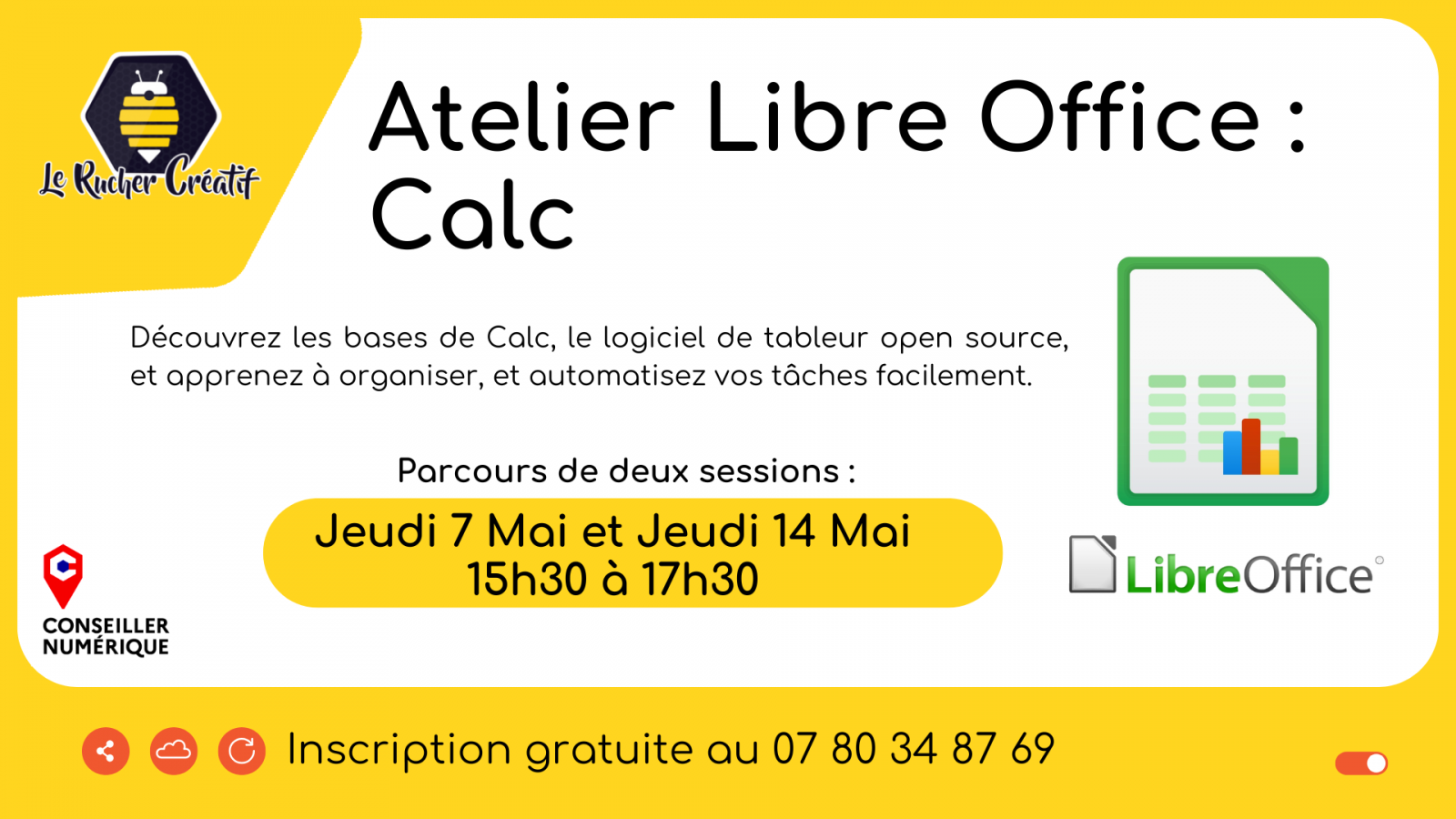 Envie de structurer vos données ou de créer des tableaux efficaces ? Rejoignez cet atelier sur deux parties, pour découvrir Calc, le tableur open source !