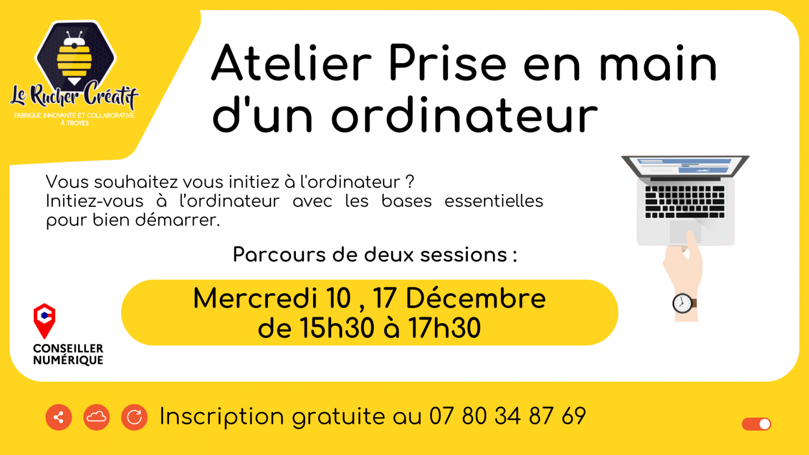 Cet atelier est conçu pour vous aider à prendre en main un ordinateur, comprendre ses fonctionnalités et naviguer avec aisance dans votre environnement numérique.