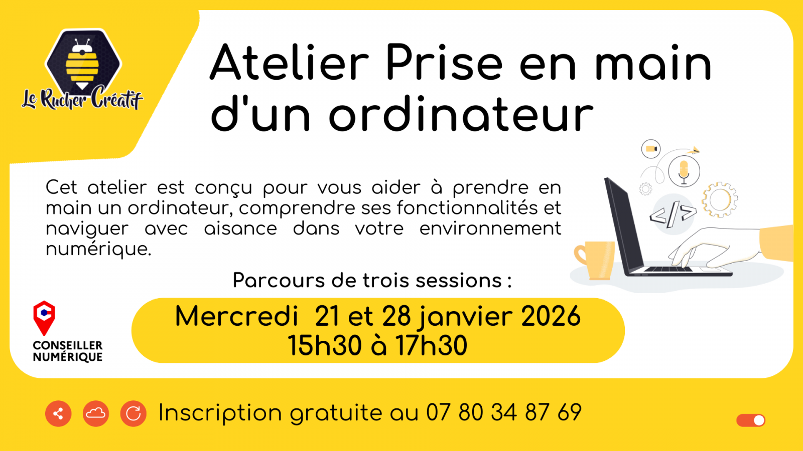 Que vous soyez un débutante ou débutant ou que vous ayez juste besoin d'un petit coup de pouce, cet atelier vous donnera les clés pour utiliser votre ordinateur avec confiance !