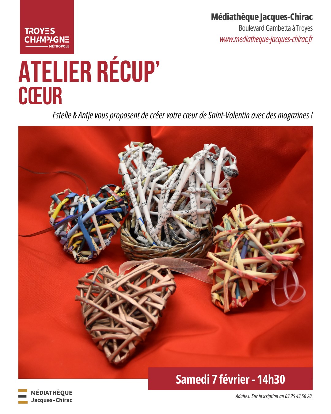 Estelle & Antje vous proposent de créer votre cœur de Saint-Valentin avec des magazines désherbés de la médiathèque !
