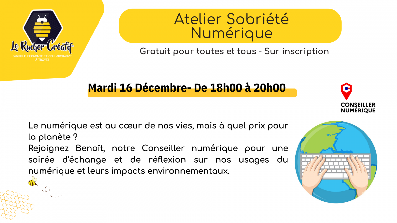 Rejoignez Benoît pour une soirée d'échange et de réflexion sur nos usages du numérique et leurs impacts environnementaux. Ensemble, explorons des solutions concrètes pour réduire notre empreinte numérique et devenir des utilisateurs plus responsables. Un rendez-vous inspirant à ne pas manquer !