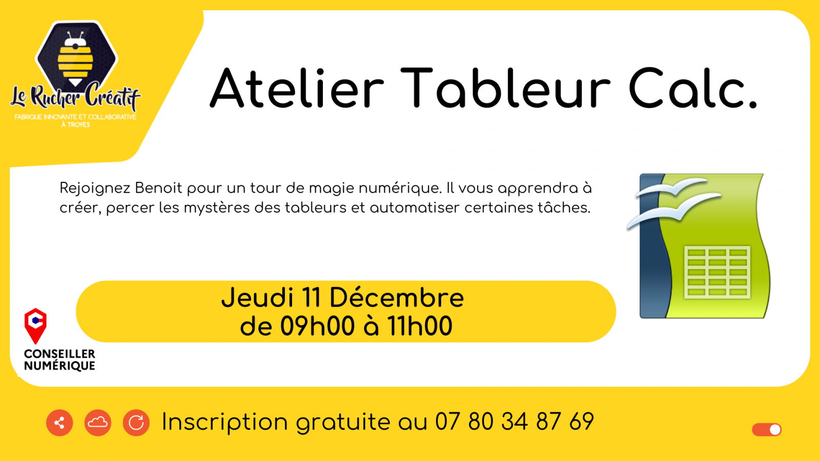Envie de structurer vos données ou de créer des tableaux efficaces ? Rejoignez cet atelier sur deux parties, pour découvrir Calc, le tableur open source !