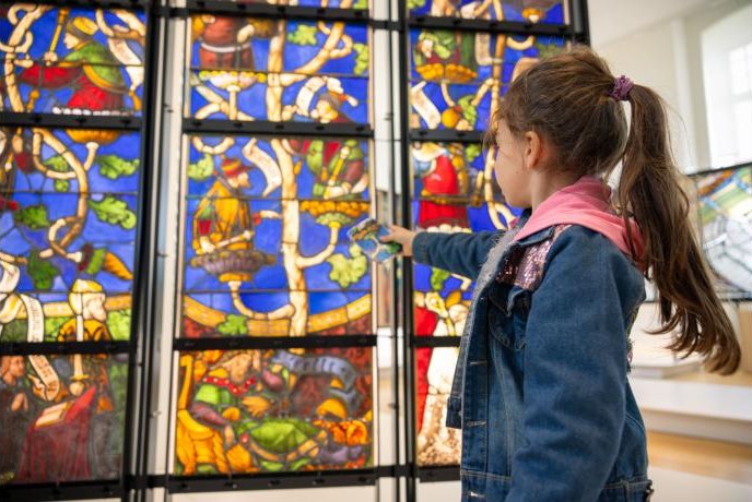 Grâce à un jeu de reconnaissance des personnages, les enfants découvrent les vitraux et leurs richesses.