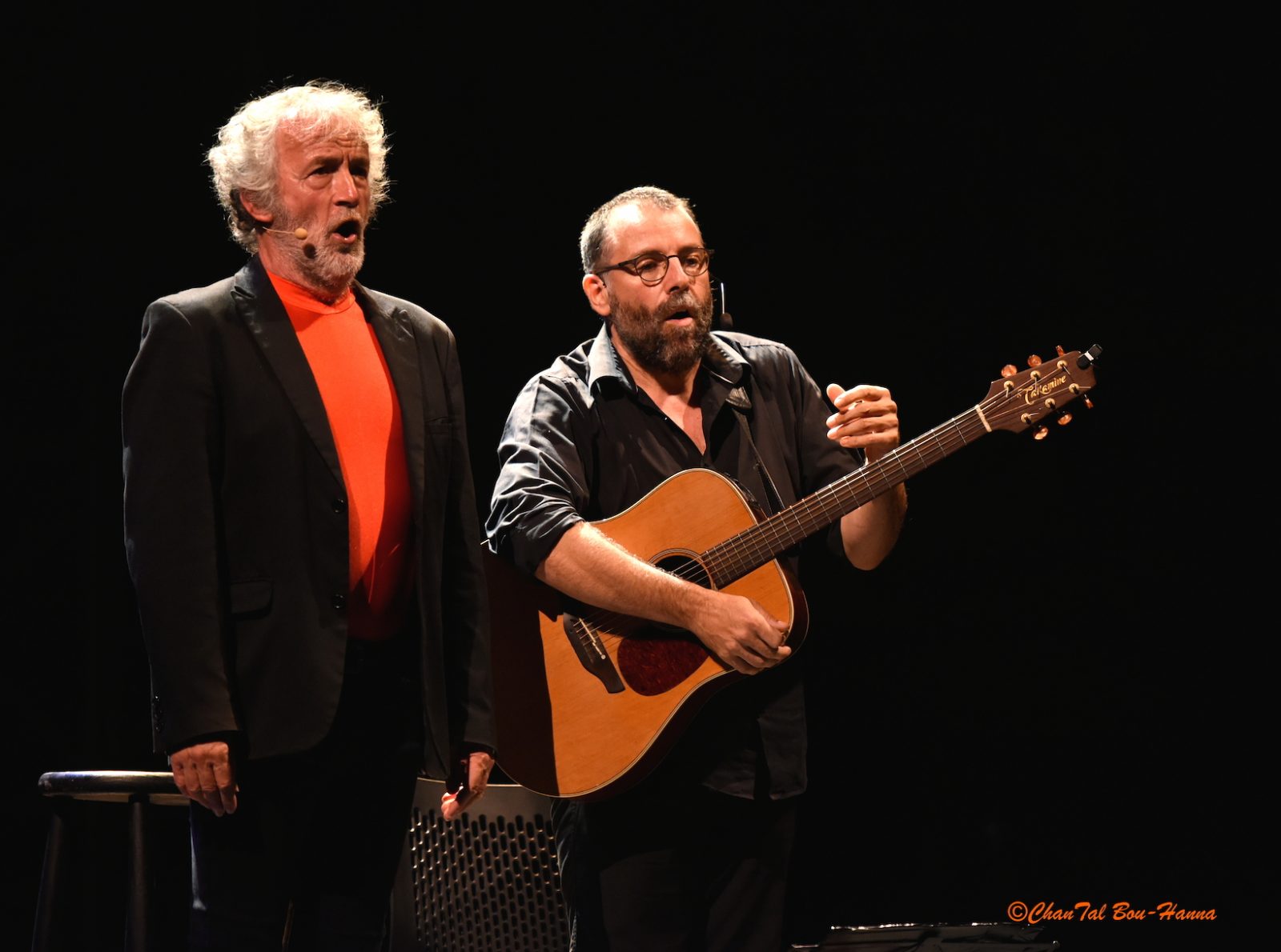 Leur cahier des charges ? La légèreté ! Sur la balance, pas un gramme de gras, deux écritures aériennes, car, voyez-vous, ces deux-là ont de la plume ! Dans cet émincé de traits d’esprit en apesanteur, ils ont pour seules armes une guitare aérienne et deux pupitres venus à pied.
