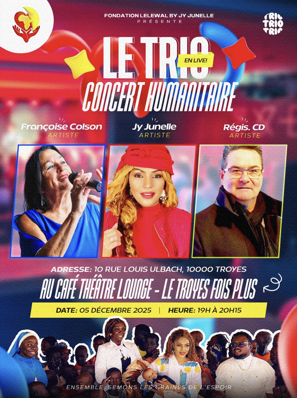 Ne manquez pas le concert humanitaire exceptionnel du groupe Le Trio où Jy Junelle sera présente !