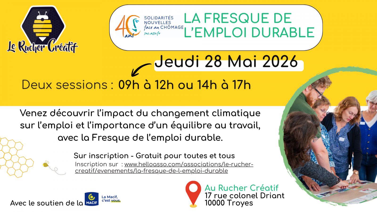 Animé par Solidarité Nouvelle face au chômage et le soutien de la Macif.