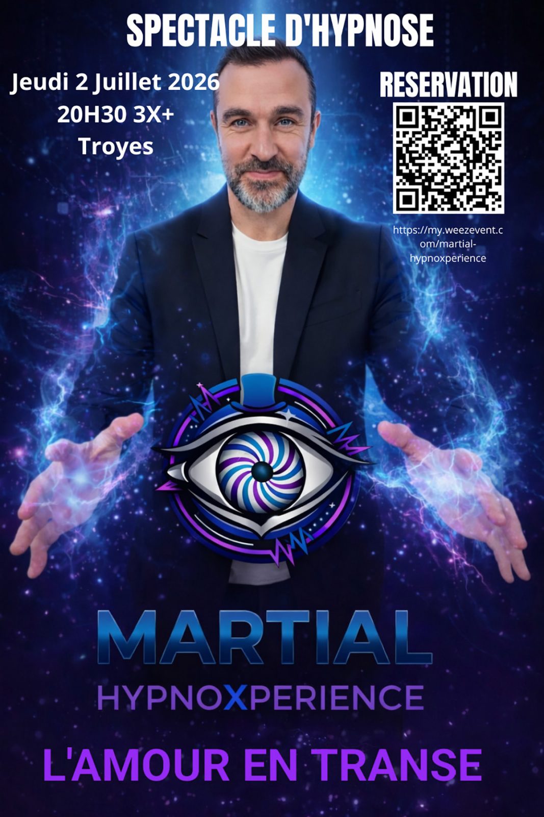 Avec L’Amour en Transe, ce spectacle propose une expérience unique mêlant humour, émotion et hypnose participative.