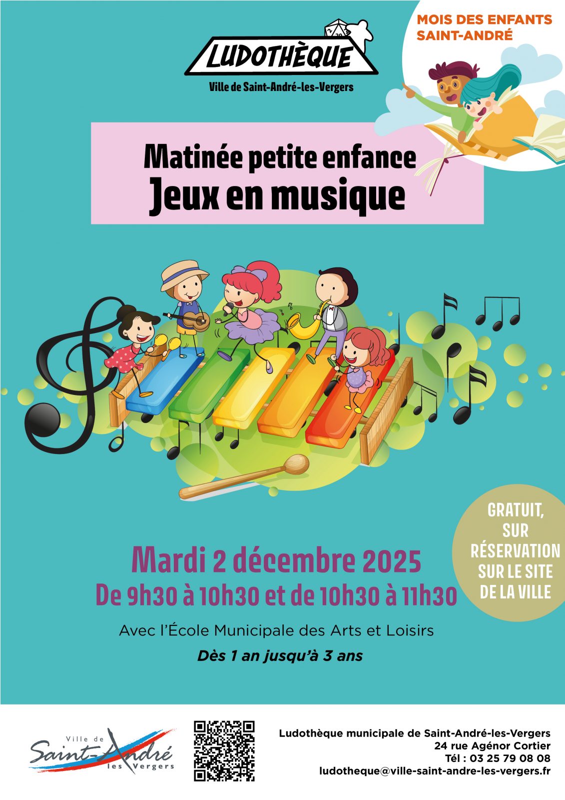 Jeux en musique :- de 09h30 à 10h30- de 10h30 à 11h30