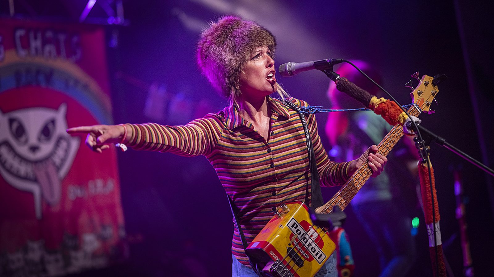 Des chansons dont les rythmes rock’n’roll ont déjà parcouru la France, le Québec, la Suisse… Ce concert est un cri d’espoir pour les nouvelles générations. Avec des instruments construits à partir de matériaux recyclés, les deux musiciens jouent et chantent le partage, l’esprit d’équipe, la nature, la préservation des cultures… Sans culture on va dans le mur! Ce concert interactif invite les enfants, devenus « les chats » à être chanteurs, danseurs ou acteurs, « lâche tes écrans viens voir du vivant » ! Candice, chanteuse, bassiste, cheffe d’orchestre, et Guillaume, multi-instrumentiste, proposent un joyeux moment à passer en famille à travers des chansons festives et intergénérationnelles qui sont de véritables hymnes à la joie !