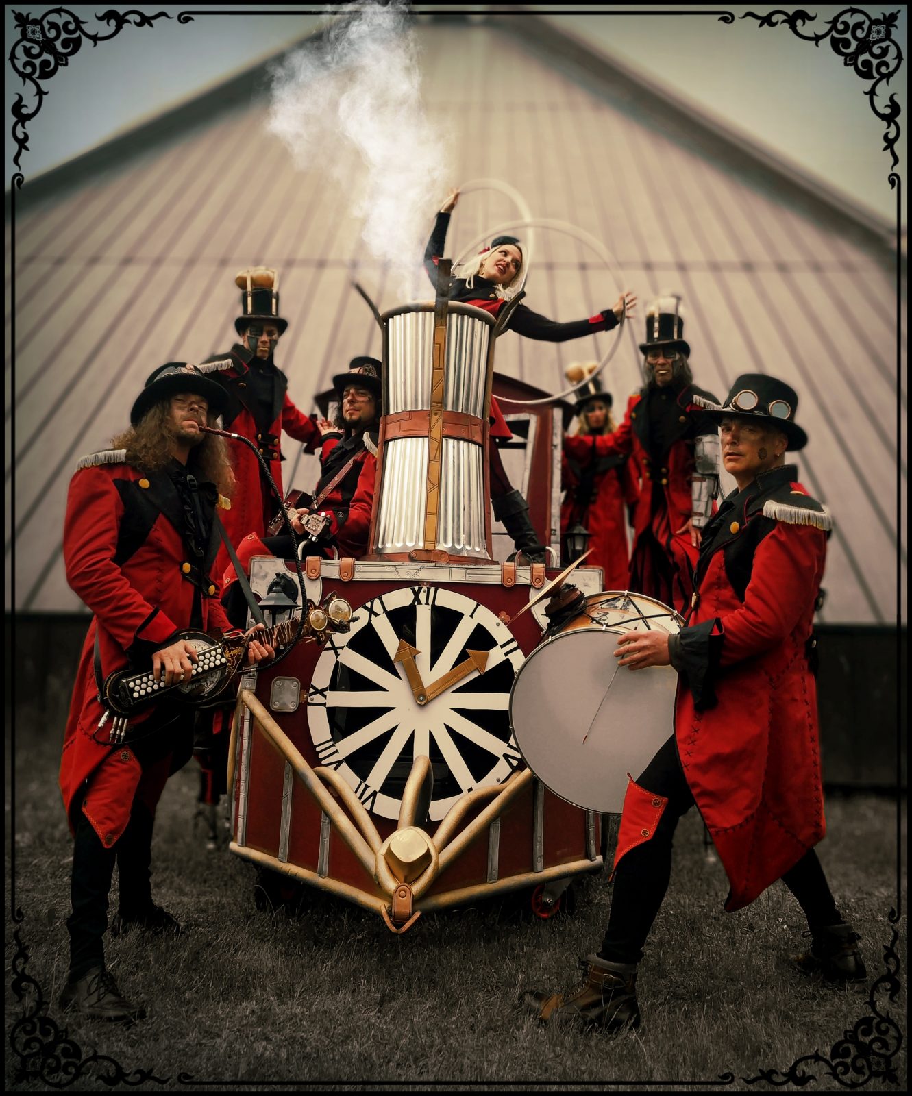 Spectacle déambulatoire et burlesque, inspiré de l’univers Steampunk et des écrits de Jules Verne.
