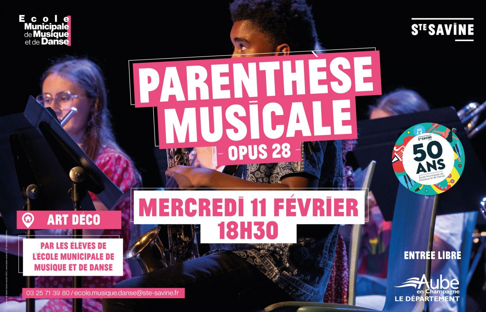 Mardi 11 février à 18h30 se déroulera l'OPUS 28 des PARENTHÈSES MUSICALES par les élèves de l'école municipale de musique et de danse.