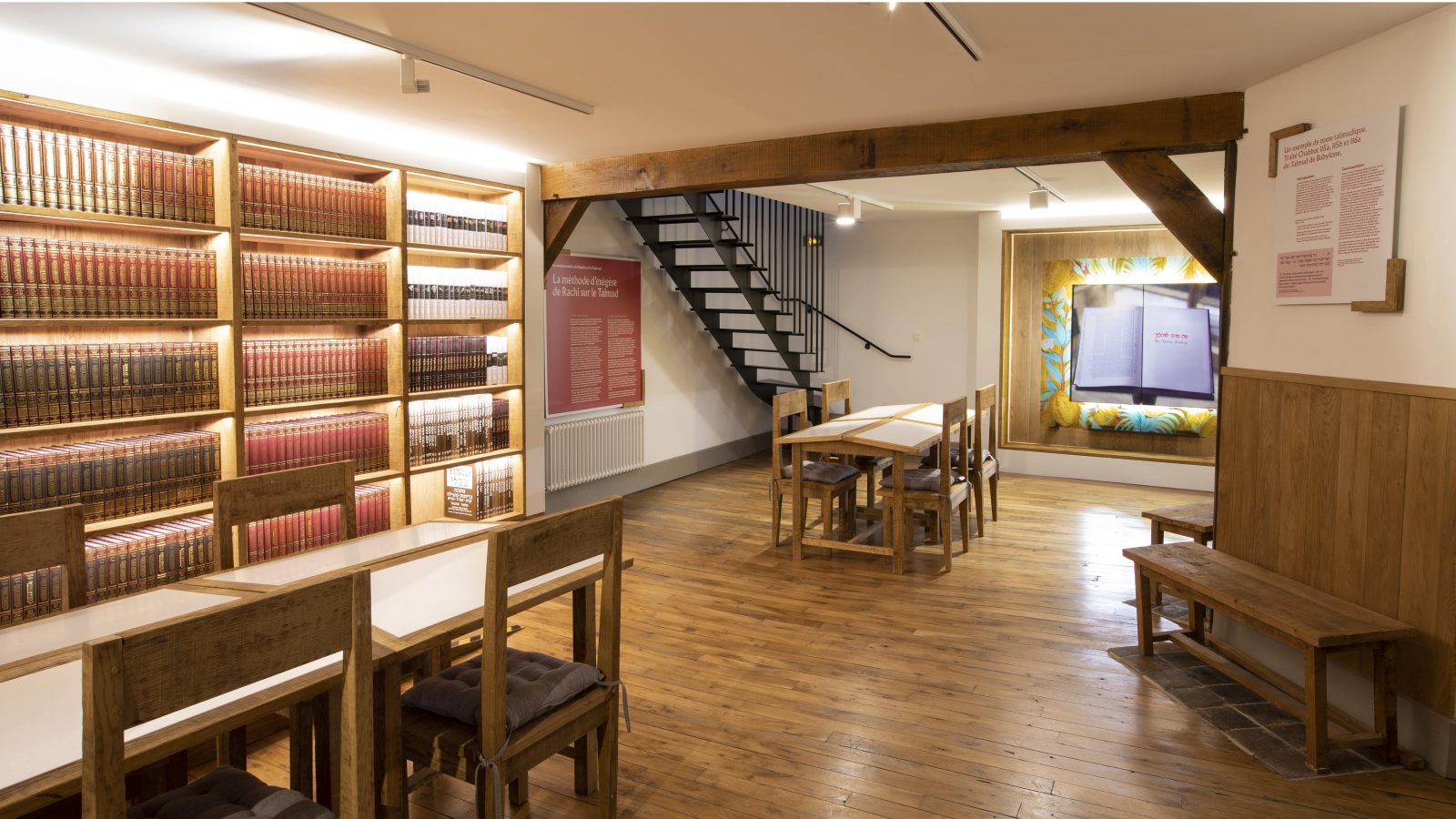 Vous découvrirez également les cours et salles restaurées, la splendide verrière de la synagogue et différentes salles d’exposition pour une approche scénographique novatrice de l’œuvre et de l’histoire de Rachi.