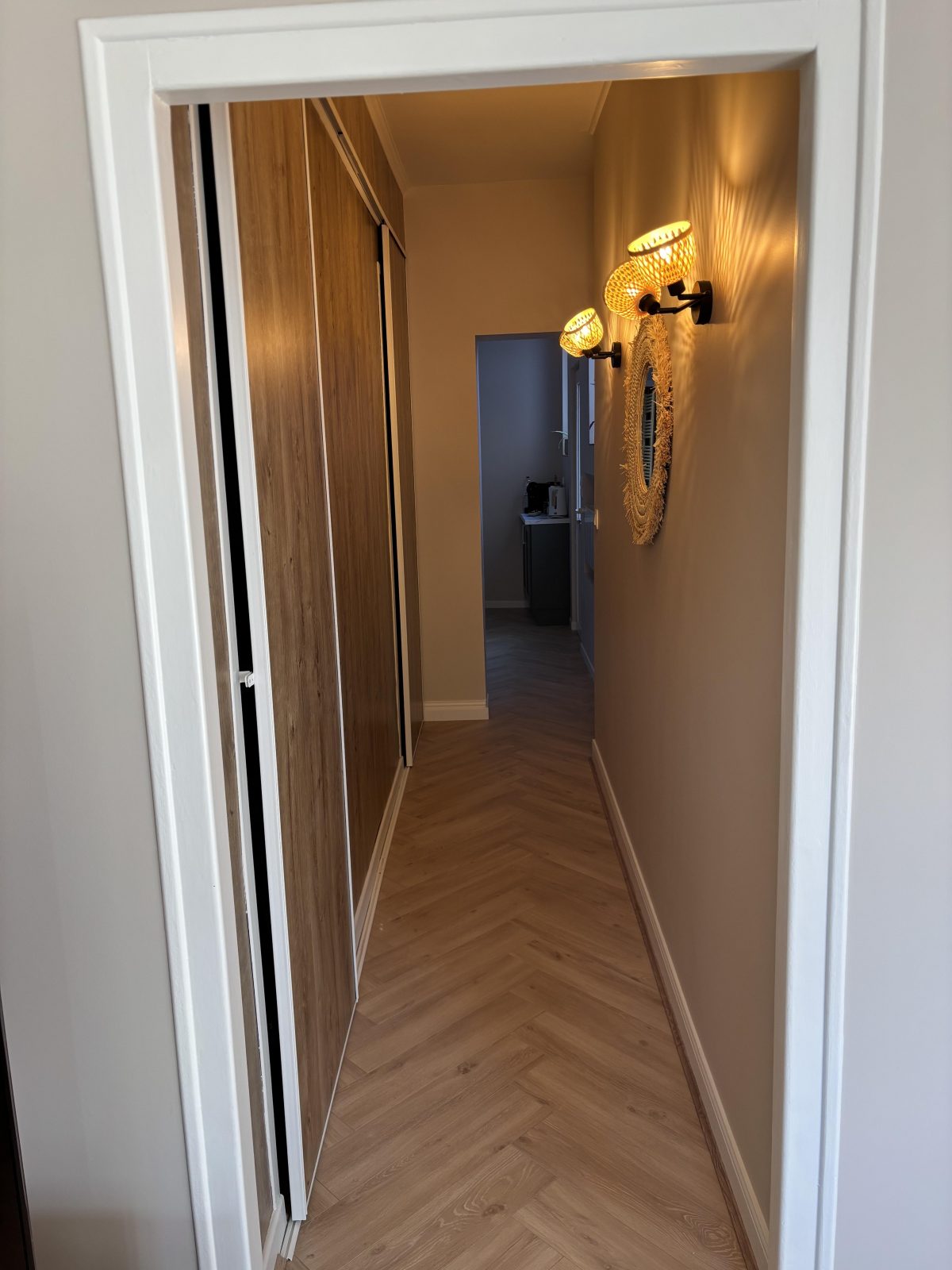 Dans cet appartement il y a juste un placard condamné aux voyageurs (à gauche dans le couloir). Tout le reste de l’appartement est disponible.
