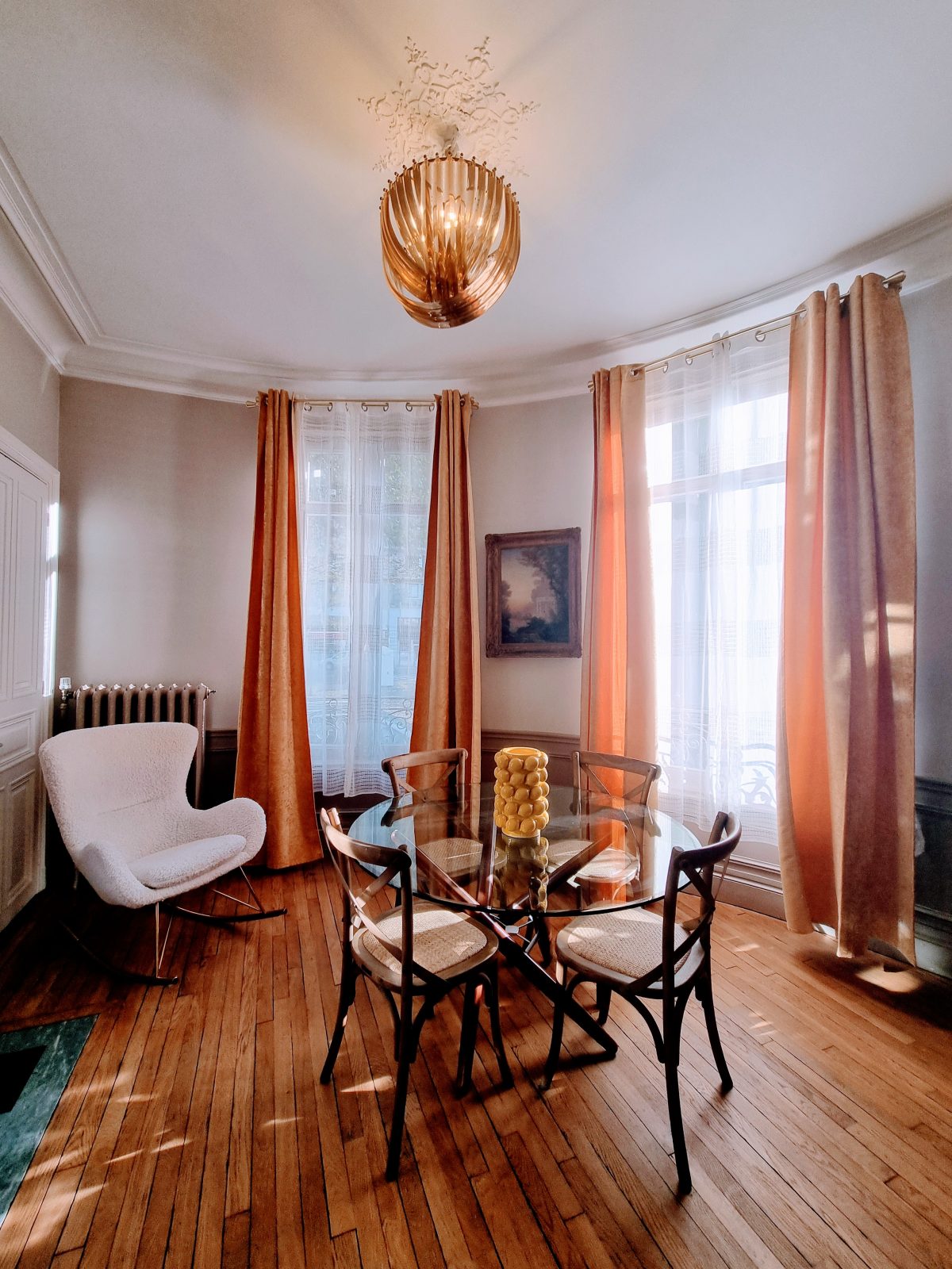 À deux pas des ruelles pittoresques et de la gare, cet appartement spacieux au style Haussmannien vous offre un instant de repos; contemplez le ciel depuis son “jardin d'hiver”. Ce cadre onirique est l’alliance subtile entre le raffinement d’antan - parquet patiné, moulures d'époque, cheminées en marbre - et l'élégance de ses ornements aux couleurs vibrantes.