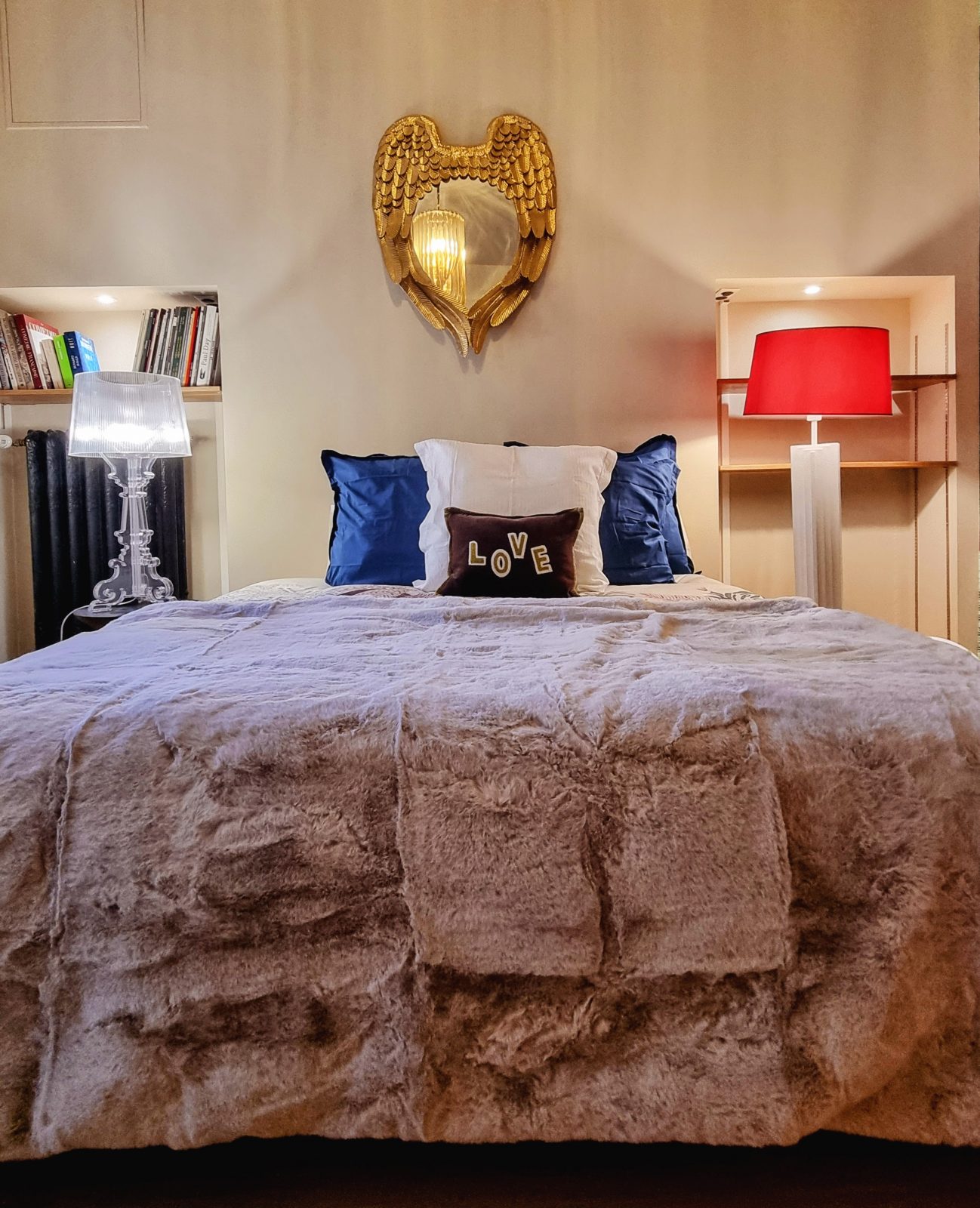 > Chambre à coucher avec prises USB & USB-C pour vos téléphones