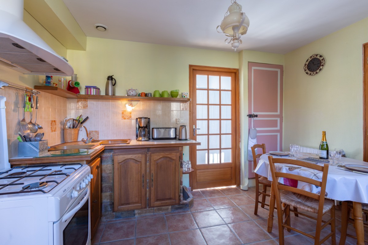 > Cuisine entièrement équipée : grand four, micro-ondes, cafetière, bouilloire électrique, grille-pain