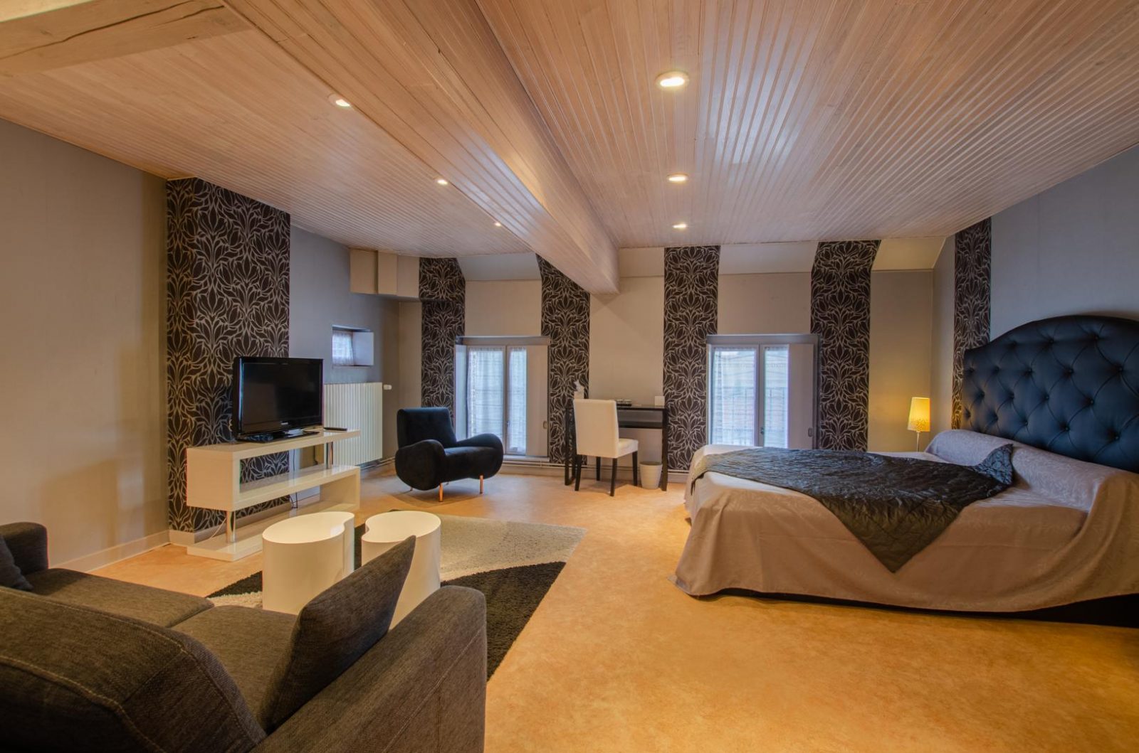 Au rdc, suite de 44 m² : un lit de 160x200 et 2 fauteuils convertibles en lits de 80 pour enfants. A l'étage de la maison principale, suite de 46 m²: un lit de 160x200, espace salon avec TV (canapé transformable en lit pour les enfants, lit d'appoint supplémentaire possible selon disponibilité), dressing, espace tisanerie avec réfrigérateur, vaste salle de bains (douche + baignoire). A l'étage de l'annexe une suite de 35 m² pour 2 adultes avec 1 lit en160 espace de détente avec TV.