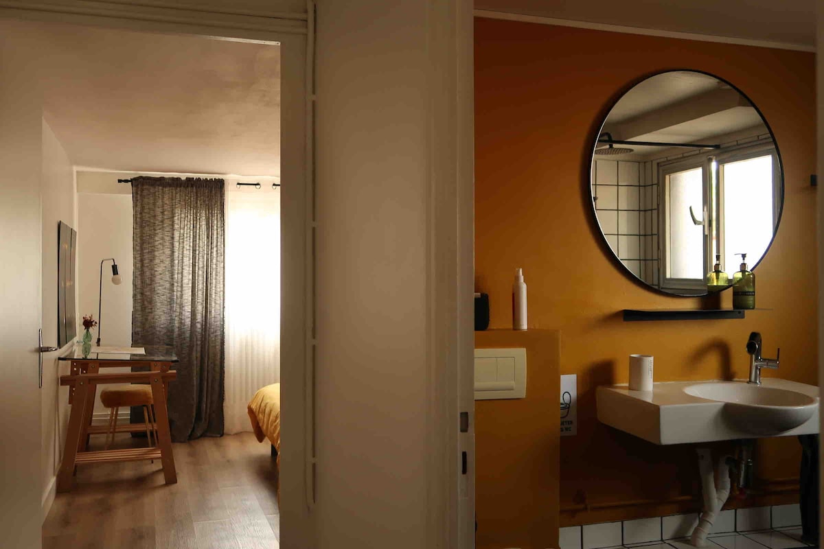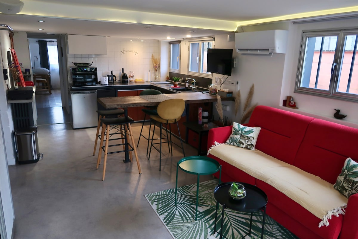 Appartement en rez-de-jardin, climatisé, totalement indépendant (arrivée autonome) et comprenant une grande chambre.