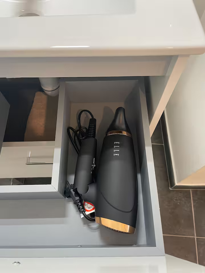 La salle d'eau est pourvue d'une douche à l’italienne.