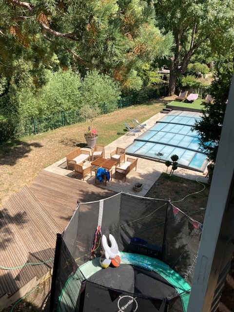 À l’extérieur, un terrain arboré d’environ 3000 m² invite à la détente et aux activités en plein air. Vous pourrez profiter d’une piscine, d’un bain nordique, d’un terrain de jeux extérieur et d’un barbecue pour des moments de relaxation et de convivialité.