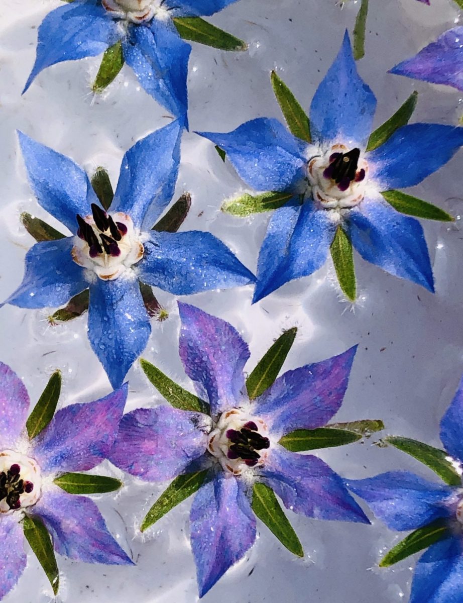 Soucieuse d’autrui, l’altruiste bourrache participe au maintien de la santé, cédant ses ornements à saveur iodée, aux desserts et aux salades, à la manière de ses congénères capucine et ail des ours se chargeant, en voisins éclairés, d’apporter un grain de sel supplémentaire .