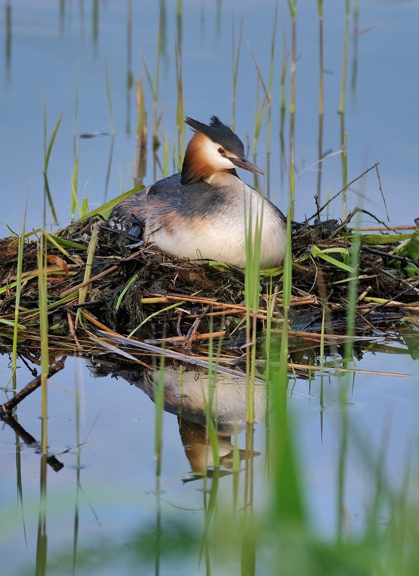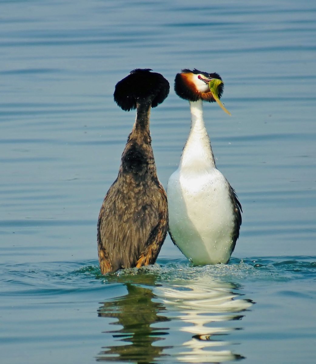 Résidant de tout plan d’eau calme foisonnant de victuailles, le grèbe huppé, puisque c’est lui, fréquente également en hiver les lacs-réservoirs aubois et marnais, y retrouvant de la famille des pays nordiques. Son nom latin « podiceps cristatus » signifiant « pied-à-l’anus », stigmatise une harmonieuse morphologie, désavantageant ses vagues pérégrinations terrestres ou aériennes.