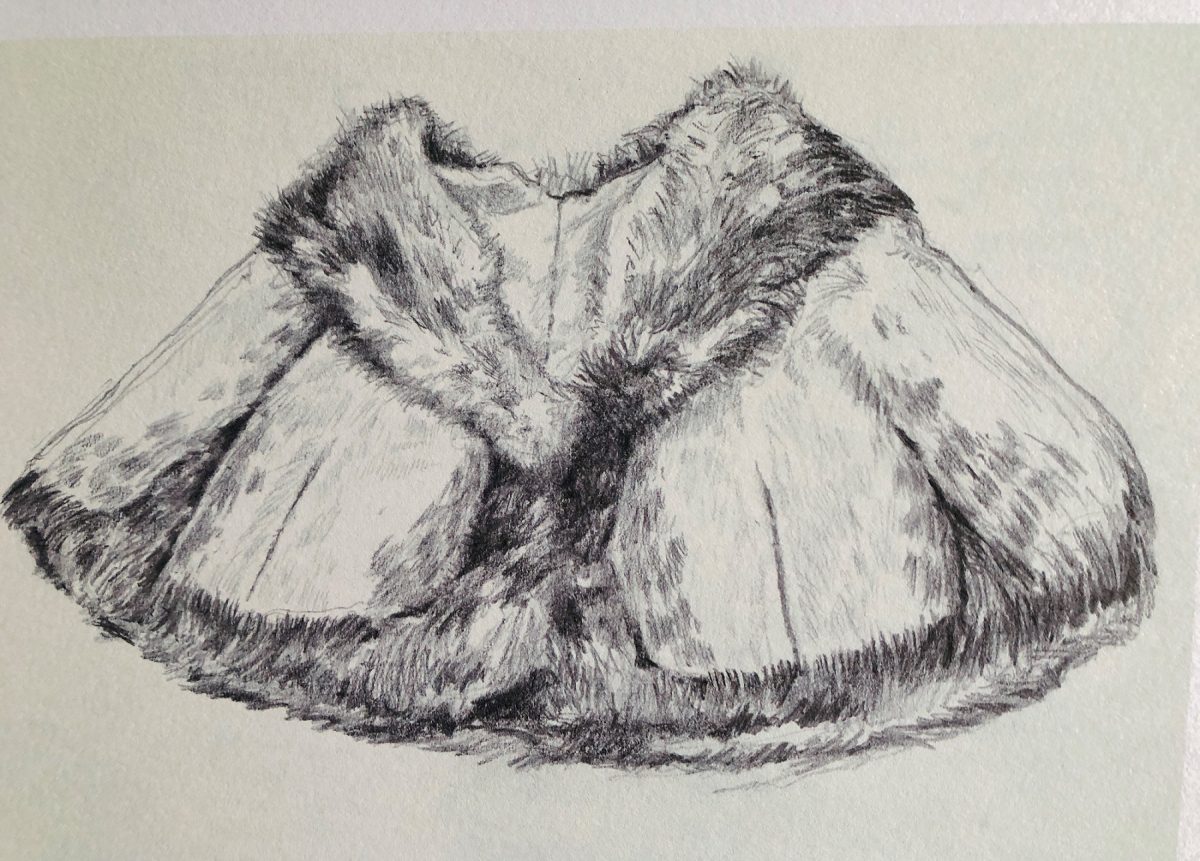 Légende du dessin ci-contre : Mantelet en duvet de grèbes © Pierre Baumgart
