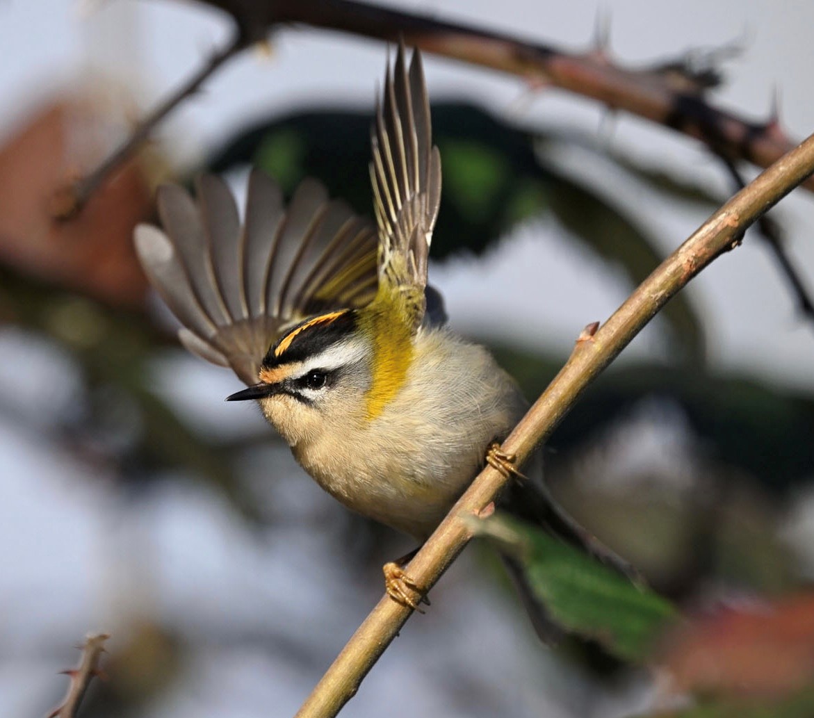 Exempt de vague à l’âme, le candide Roitelet virevolte nerveusement sous la ramure, insouciant du titre européen de poids plume avec ses 5 grammes correspondants à la légèreté d’une pièce d’1 euro.