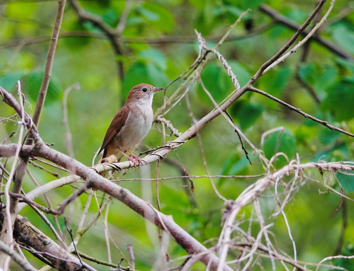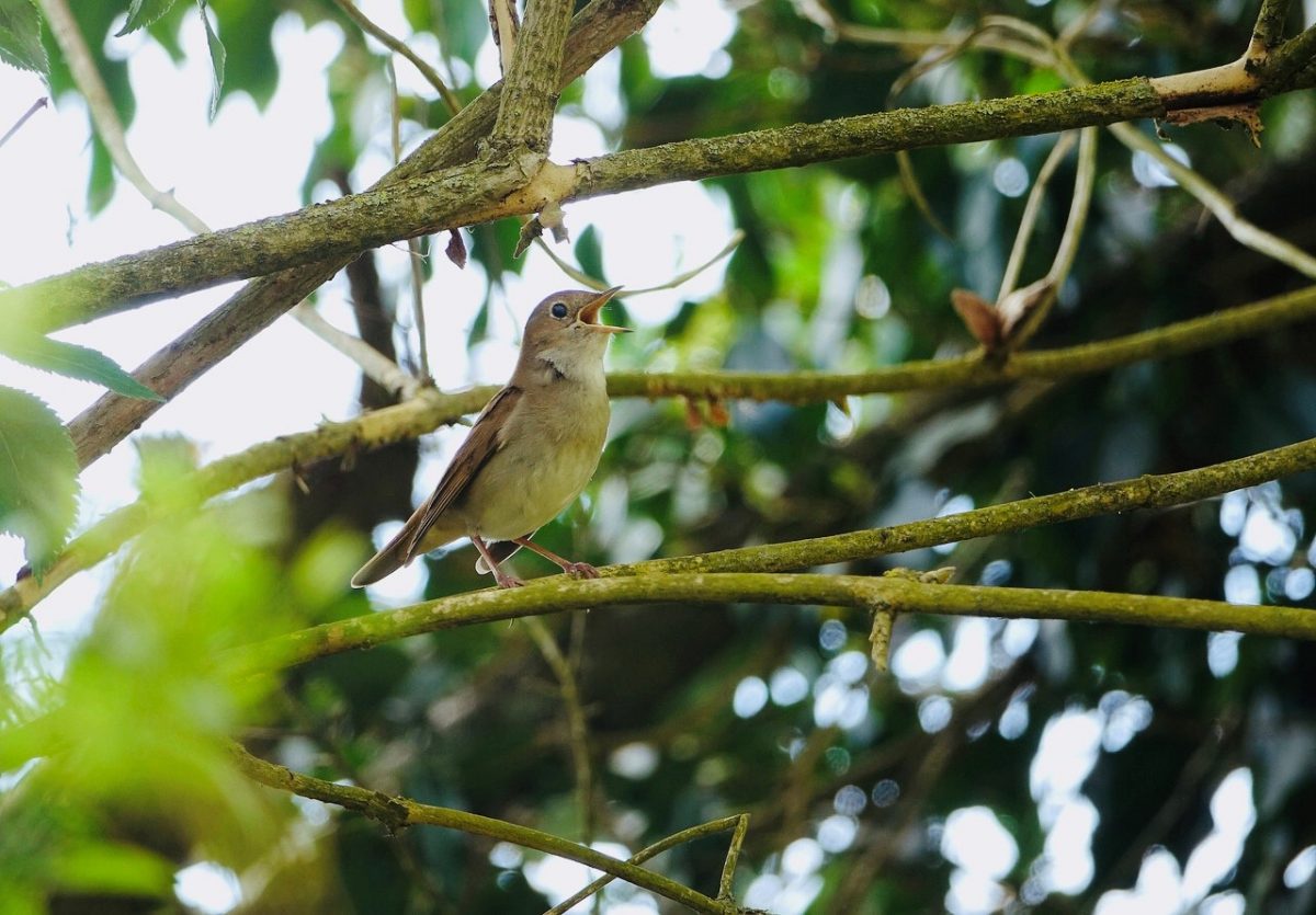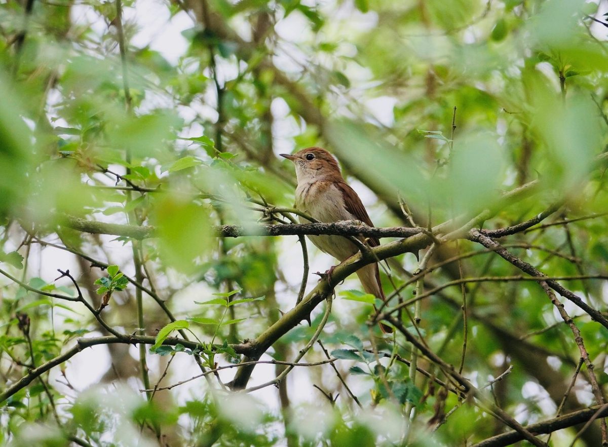 Camouflé dans un taillis, le Rossignol surveille son territoire