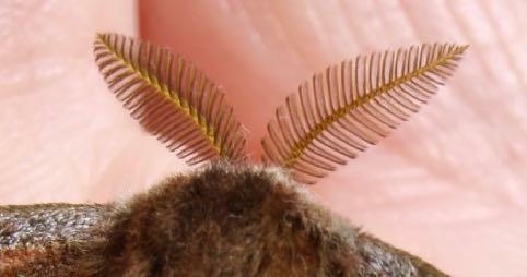 Les antennes pectinées du petit paon de nuit se présentent en forme de peigne. Elles sont le siège de son odorat pour trouver les femelles de son espèce © Yves Meurville