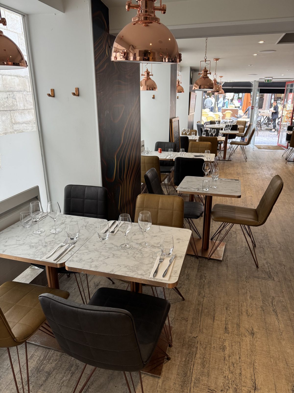 Retrouvez une belle sélection de vins aux verres (environ une vingtaine) et restaurez vous autour d’une belle carte à l’ardoise composée de plats traditionnels français à base de produits locaux.