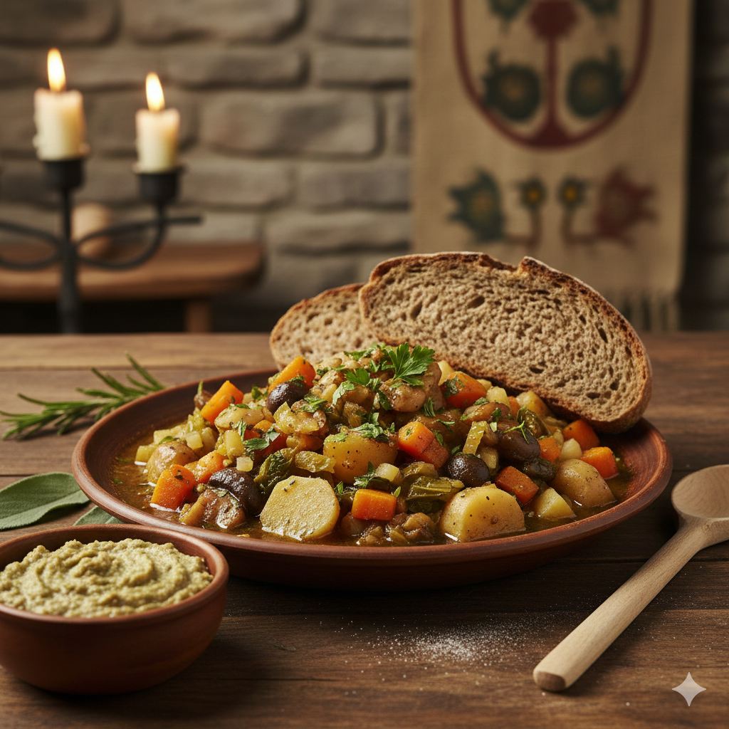 Les foires médiévales de Troyes ne sont pas seulement des lieux d’échanges commerciaux. Il y règne une grande effervescence : c’est l’occasion d’organiser des agapes festives, au cours desquelles les rues s’emplissent de rires, de musiques… et de délicieux fumets. Dans ses commentaires, Rachi évoque avec réalisme des scènes de la vie quotidienne : du vin entreposé dans de grandes jarres ; des pains vendus à l’extérieur des boutiques, disposés sur des étagères ; des oubliès, ces petits gâteaux parfumés aux aromates vendus dans des paniers à clairevoie ; des bières au jus d’orge ; des rôtis d’oie ; ou encore de la viande de mouton ou de coq farcie.