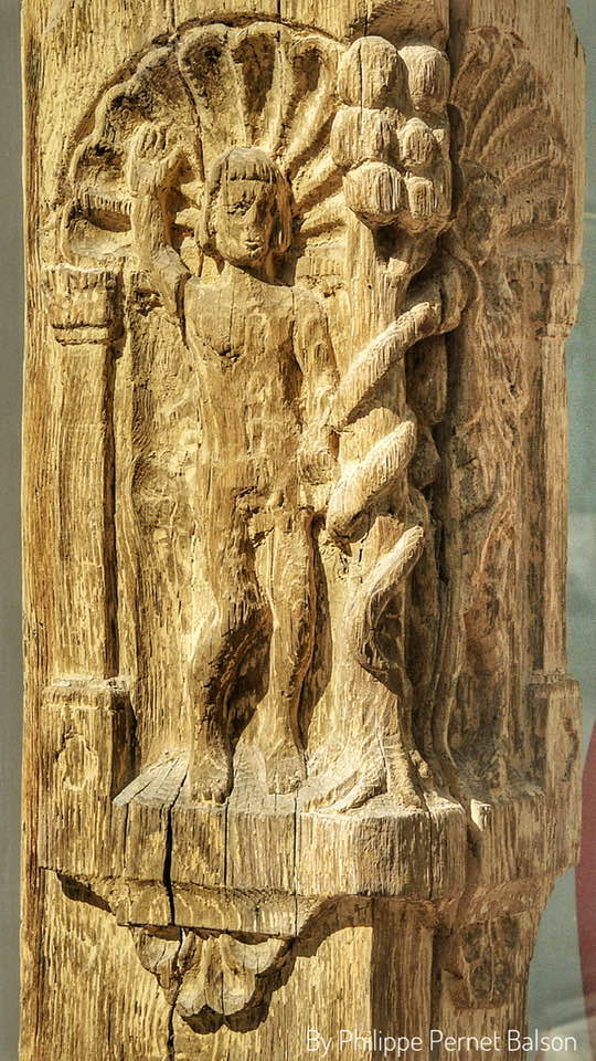 Distinguez- vous le fameux fruit défendu, sculpté entre Adam et Ève ?