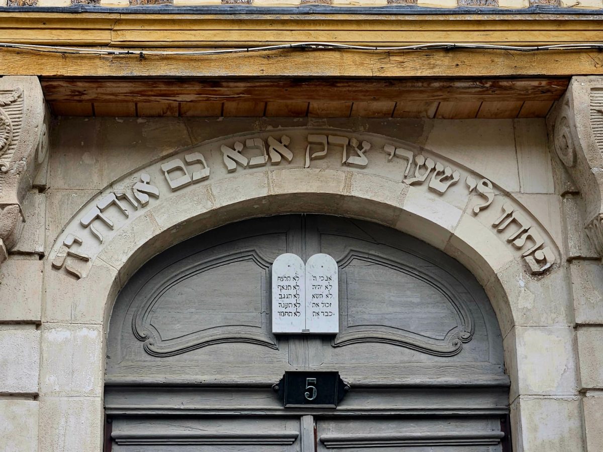 Comme beaucoup de synagogues, celle de Troyes porte un verset de la Bible, gravé en hébreu sur son linteau. Cette tradition ancienne inscrit dès l’entrée, un message spirituel fort, pour rappeler l’essence du lieu. Le verset, lu de droite à gauche, est tiré du Psaume (118, 19), attribué au roi David : « Ouvrez-moi les portes de la justice. Je veux les franchir, rendre hommage à l’Éternel ».